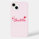 Cherchez-vous un nouveau boîtier téléphonique pour votre iPhone 14 plus? Découvrez ce stylish Retro Script Monogram rose Coque-Mate iPhone 14 Plus Coque. Il dispose d'une police de script rétro cool avec des étoiles brillantes sur un arrière - plan rose. Vous pouvez ajouter votre nom très facilement. Heureux de Customiser !