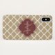 Un élégant motif de quatrefoil marocain Barely There i iPhone X Coque avec un badge de couleur bordeaux vous pouvez personnaliser en ajoutant votre nom et monogramme initial à. Il fait partie de la collection Warm Sand and Spiced Apple Spring Quatrefoil Collection.