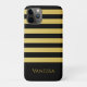 Cet élégant coque iphone est orné de rayures dorées sur un arrière - plan noir. Personnalisez-le avec votre nom en bas.