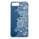 Coques Case-Mate iPhone Élégante dentelle blanche sur Arrière - plan bleu