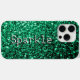 Emerald green faux parties scintillant scintille Votre texte iPhone 15 Coque. De belles parties scintillant brillantes girly brillant scintillent design. Photo de parties scintillant pétillante ! Faux scintille !