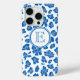 Coques Case-Mate iPhone Empreinte de léopard Monogramme Bleu Et Blanc