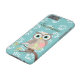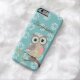 Le hibou aux nuances de brun chocolat léger et de son corps a un rose s'est levé avec le feuille de vert de chaux et le motif circulaire blanc. Les ailes sont dans brun chocolat avec le motif blanc. Le feuille sur une branche est dans orange-foncé, turquoise, chaux. L'arrière - plan est dans la sarcelle d'hiver légère avec le motif blanc de baies. Le texte est dans brun chocolat aussi bien et il est personnalisable. C'est une illustration numérique.