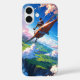 Boîtier de téléphone anime de haute qualité avec un jeune aventurier volant avec un planeur au-dessus des nuages pastel et des îles flottantes. Parfait pour les fans d'anime qui aiment l'aventure, les scènes du ciel et les illustrations d'action dynamique.