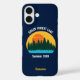Belle réunion familiale lac vacances bleu coque iphone avec les jolies eaux bleues sous la forêt d'arbres et cool coucher de soleil orange. Un étui téléphonique pour camping pour votre randonnée nature ou groupe sauvage.