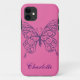 Un papillon violet profond en fécule fantaisie habille votre nom sur ce coque iphone rose chaud.