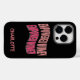 Fille moderne, feminine, design mignon "autonomiser les femmes". Typographie rouge & pêche et rose avec nom personnalisable noir IPhone 14 pro coque Motivational/inspirationnel femme´s day citation en motif ondulé.