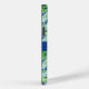 De belles feuilles tropicaux et des frondes de palmiers dans les tons verts, sur un arrière - plan bleu royal crée un étui téléphonique magnifique et luxueux. Un ruban bleu, à l'ombre de l'arrière - plan, porte votre nom en vert pâle.