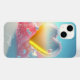 Tendance moderne coeur d'amour de fille personnalisées Nom coque iphone présente votre nom personnalisé en typographie de script blanc sur une fille moderne arrière - plan coeur d'amour romantique en rose, bleu et jaune coloré. Un cadeau parfait pour elle pour son anniversaire, petite amie pour la Saint Valentin, maman pour la Fête des Mères, soeur ou bestie pour Noël et les fêtes. Conçu par ©Evco Studio www.zazzle.com/store/evcostudio