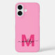 Boîtier téléphonique original de couleur rose chaud et magenta. Ajoutez une pop de couleur vive et joyeuse à votre téléphone avec ce boîtier téléphonique chic et personnalisé. Doté d'un arrière - plan rose vif et d'une initiale rose chaud magenta audacieuse, jumelé à un nom de script noir élégant, ce design combine le plaisir avec la féminité pour un look élégant et moderne. Idéal pour les soeurs de sororité, les étudiants, ou toute personne qui aime une touche ludique mais élégante, cette étui téléphonique fait un cadeau réfléchi pour les anniversaires, les vacances, ou toute occasion spéciale. Pratique, personnalisée et pleine de personnalité, cette étui téléphonique est le moyen idéal pour élever vos accessoires de tous les jours.