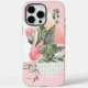 Coques Case-Mate iPhone Flamant rose tropical féminin avec Monogramme