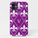 Coques Case-Mate iPhone Fleur de Lis violet profond avec monogramme