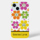 Communiquez avec style grâce à cette coque d'iPhone personnalisable qui présente un design tendance de flower power de style rétro dans des nuances vibrantes de rose, orange, jaune et vert. Ce qui rend ce design unique, ce sont les six espaces de texte qui vous permettent d'ajouter un nom et de personnaliser le texte à l'intérieur de chaque fleur pour créer un cadeau vraiment unique pour les femmes, les adolescentes et les filles qui aiment le design rétro moderne. Parfait pour les anniversaires, les vacances ou toute autre occasion. Cette coque de téléphone amusante est sûre de ravir les femmes de tous âges.