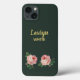 Coques Case-Mate iPhone Fleur rose et feuilles sur vert foncé