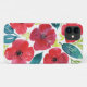 Notre étui téléphonique présente des fleurs tropicales en rouge et rose.