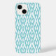 Ce boîtier téléphonique a un design Art Déco de diamants reliés par des lignes courbes en turquoise.