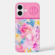 Coques Case-Mate iPhone Fleurs d'aquarelle rose et bleu Monogramme