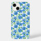 Coques Case-Mate iPhone Fleurs d'eau bleu, fleurs sauvages sur blanc