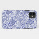 Joli coque iphone imprimé avec un motif bleu et blanc orné de tourbillons paisley, coeur d'amour et fleurs. Style Boho.