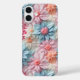 Ce boîtier de téléphone a un design floral pastel dessus.