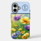 Coques Case-Mate iPhone Fleurs sauvages jaunes et violets Monogrammes