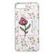 Un étui téléphonique avec votre nom customisé et une jolie fleur rose à l'intérieur d'un cadre carré avec une bordure rose. L'arrière - plan est un motif avec des fleurs sauvages roses dessinés à la main avec de longues tiges vertes et des feuilles sur un arrière - plan blanc en coquille d'oeuf. Des cercles roses et des sprigs décorent également le design. Design Whimsical et joli à fleurs.