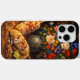 Personalized with elegant initials and a name, this phone case offers a subtle custom touch while allowing the artwork to remain the focal point. The strong contrast between the dark background and colorful florals creates a refined, fine art feel, while the rich textures and warm tones add depth and visual interest.