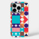 Abstrait iphone géométrique 14 pro costume mate en bleu, turquoise, rouge, noir et orange.
