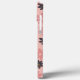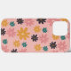 Funda para Iphone floreado con fondo rosado.