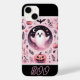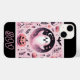 Le Boo convivial, funky iPhone Smart Phone Case dispose d'un fantôme, d'une chauve-souris et d'une Jack-o'-lantern chaleureux dans un cadre rose pastel. Parfait comme cadeau pour Halloween, Noël, Anniversaire, Thanksgiving et plus. Conçu par © Designer Artist, www.zazzle.com/store/electronics_gallery