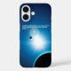 Image stylisée dans les tons bleus et blanc de la Terre et de la Lune rétroéclairée par le soleil. Une traduction anglaise de Genèse 1:4 qui disait "Dieu a vu que la lumière était bonne, et Dieu a divisé la lumière de l'obscurité" apparaît également en bleu et blanc éclatant.