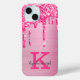 Ce design de poutres glam tendance et unique présente des gouttes de parties scintillant rose bonbon en haut et un grand monogramme personnalisable en fuchsia magenta rose chaud au centre dans la typographie serif populaire ainsi qu'un nom personnalisable en gris dans le script populaire avec un look lettré à la main. L'arrière - plan comprend du métal rose bonbon brossé pour ajouter du brillant. Vous pouvez personnaliser cet article en modifiant le monogramme et le nom dans le modèle de produit.