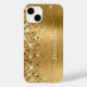 La parties scintillant en or brillant faux filé met en surbrillance sur le bord gauche sur un faux papier en métal brossé jaune doré. La signature girly moderne dispose d'une élégante police de calligraphie blanche avec queues décoratives. Customisez les styles de police pour créer votre propre équipement téléphonique pour votre meilleur ami.