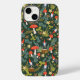 Illustration personnalisée sur le thème du bois vert et rouge, dessinée par Shelby Allison, avec un petit personnage de gnome, des champignons, des fleurs et du feuillage.