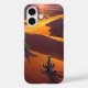 Une scène désert d'inspiration anime unique, avec des dunes brillantes et des silhouettes de cactus au coucher du soleil. Un paysage chaud et exotique pour les fans d'anime.