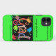 Ce coque est pour les I phone 4 et 4s. Avec un fond vert vif et un signe gris avec des casquettes, tourbillons et confettis de différentes couleurs. Tout cela sur un fond noir et un ruban vert autour. Le coque est complété par Félicitations et à et de qui peut être customisé avec vos propres informations.