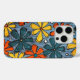Fleurs jaunes, oranges et bleues en gras sur un arrière - plan super à la ligne bleue.