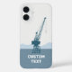 Silhouette de la grue à cargaison de chantier naval. Icône vectorielle avec couleur personnalisable. Texte personnalisé.