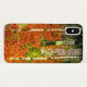 coque iphone avec la peinture de Gustav Klimt Farmhouse with Birch Trees (1903). Un paysage automnal de feuilles oranges dans une forêt de bouleaux aux belles fleurs bleues. Un cadeau merveilleux pour les amateurs d'Art Nouveau et d'Art autrichien.