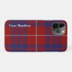 Élégant boîtier téléphone comptoir iPhone 11 réalisé dans le traditionnel tartan écossais rouge, blanc et bleu du clan Hamilton. Le texte blanc qui tourne verticalement, sur le côté gauche, est prêt à être personnalisé. Un moyen élégant et idéal de protéger votre téléphone intelligent, et de faire une idée cadeau formidable.