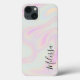 Coque iphone Holographique moderne Elégant Iridescente Rainbow Name. Personnalisez avec un nom de police de script de signature. Dispose d'un arrière - plan holo esthétique tendance.