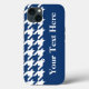 Coques Case-Mate iPhone Houndstooth élégant Navy avec texte personnalisé