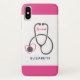 Une caisse de casemate avec la "infirmière" écrite dans une police fraîche de manuscrit avec un peu de coeur rose autour du. Conçu avec une illustration grise simple de stethescope. Un coeur rose entoure le chestpiece.
