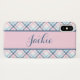 Joli rose pastel et bleu plaid motif iPhone X Coque personnalisé avec votre nom. Changez le nom vous-même lorsque vous commandez.