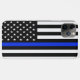 Drapeau d'application de la loi avec mince ligne bleue symbole.