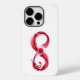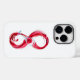 Infinity symbole of continuous stream of red pouring into glass glass glass on white background.