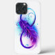 Infinity symbole with a beautiful feather painted in purple and blue bright colors on white background