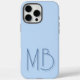 Moderne Monogramme bleu Initiales Téléphone contemporain 16 Pro Max Coques dispose d'un monogramme personnalisé dans la typographie de script moderne. Parfait pour la famille et les amis pour les anniversaires, Noël, vacances, Fête des Mères, Fête des pères et plus. Conçu par ©2024 Evco Holidays www.zazzle.com/store/evcoholidays