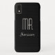 Ce coque noir et blanc pour l'iPhone XR est décoré d'un faux motif de burlap texturé avec initiales et nom de famille. Facile à ajouter votre nom. Quel cadeau unique et amusant pour un marié (coque marié disponible pour créer un ensemble MR & MRS). Sélectionnez Casemate Barely There Commuter ou Tough Series. Tous droits réservés © 2018 Alan & Marcia Socolik.