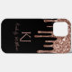 Ce boîtier de téléphone personnalisé élégant présente un design glamour et girly sur un arrière - plan noir. Les paillettes de parties scintillant en or rose coulent sur la partie supérieure. Les initiales du monogramme sont placées sous la parties scintillant, suivies d'un exemple de nom imprimé dans une police de script élégante.